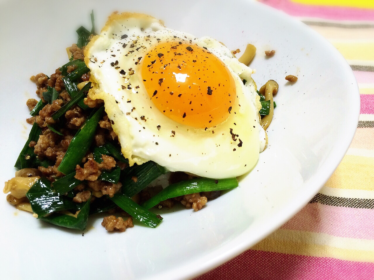 シンプルニラ玉ひき肉丼 レシピ 作り方 E レシピ 料理のプロが作る簡単レシピ