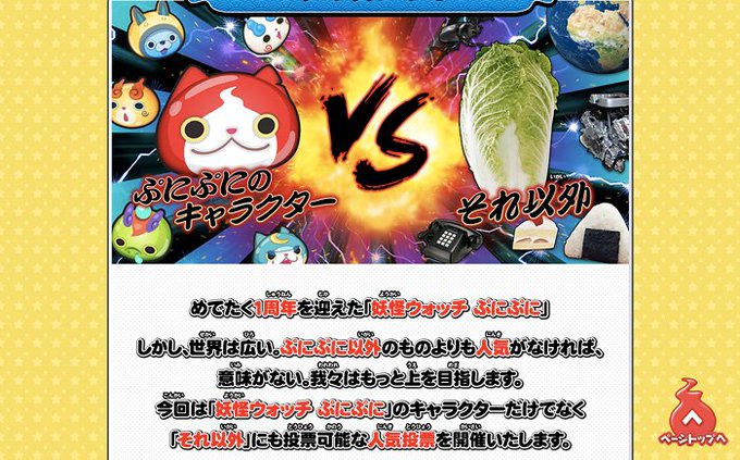 ![]() インターネットの歴史に残る究極の人気投票 ぷにぷにvsそれ以外 とは | インターネットの歴史に残る究極の人気投票 ぷにぷにvsそれ以外 とは |